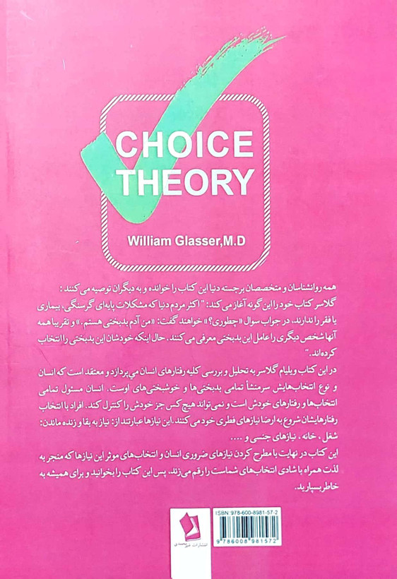 کتاب تئوری انتخاب اثر دکتر ویلیام گلسر انتشارات شیرمحمدی