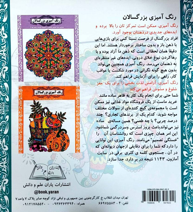 کتاب رنگ آمیزی بزرگسالان 1 کتابی برای آرام نمودن درگیری های ذهن انتشارات یاران علم و دانش