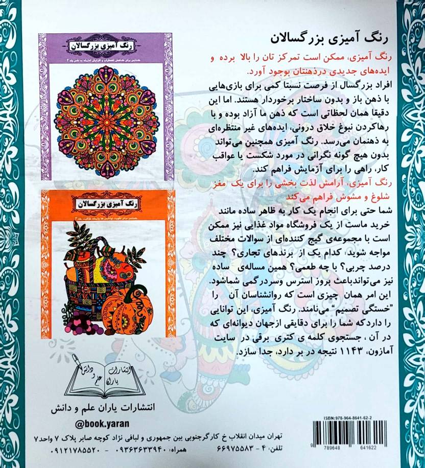 کتاب رنگ آمیزی بزرگسالان 1 کتابی برای آرام نمودن درگیری های ذهن انتشارات یاران علم و دانش