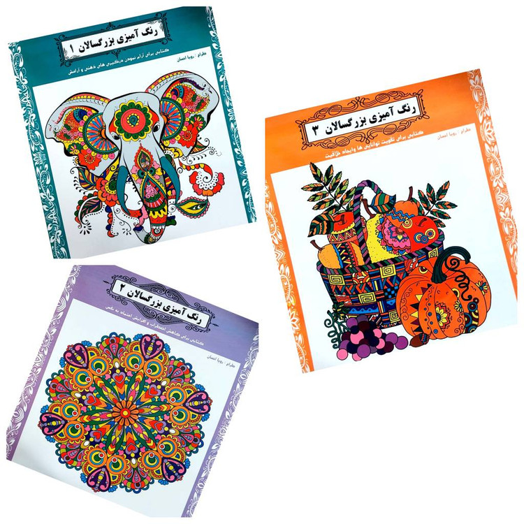 کتاب رنگ آمیزی بزرگسلان 3 جلدی کتابی برای آرام نمودن ذه و درگیری های ذهنی
